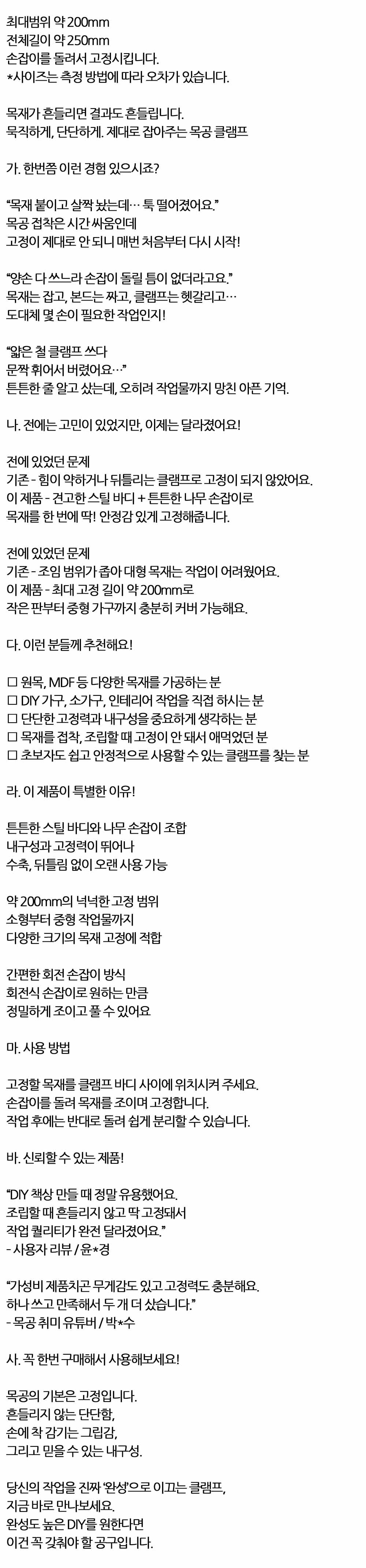 묵직하게 단단하게 제대로 잡아주는 목공클램프 200mm