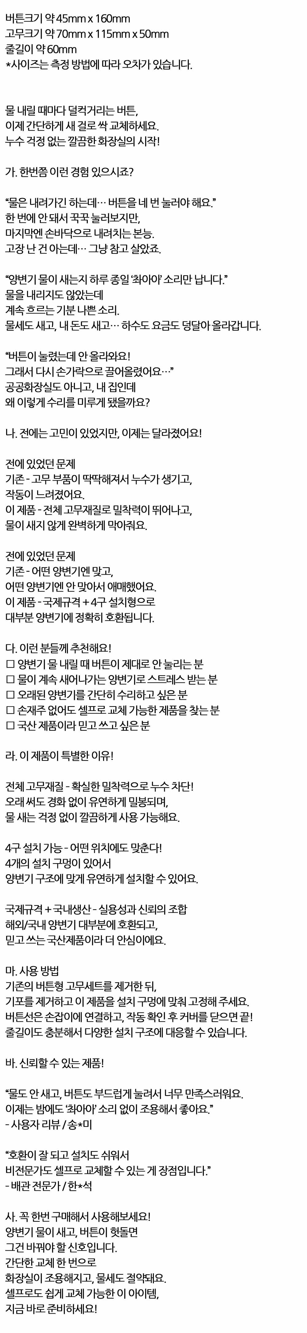 누수 걱정 없는 깔끔한 화장실 버튼형 양변기부속품