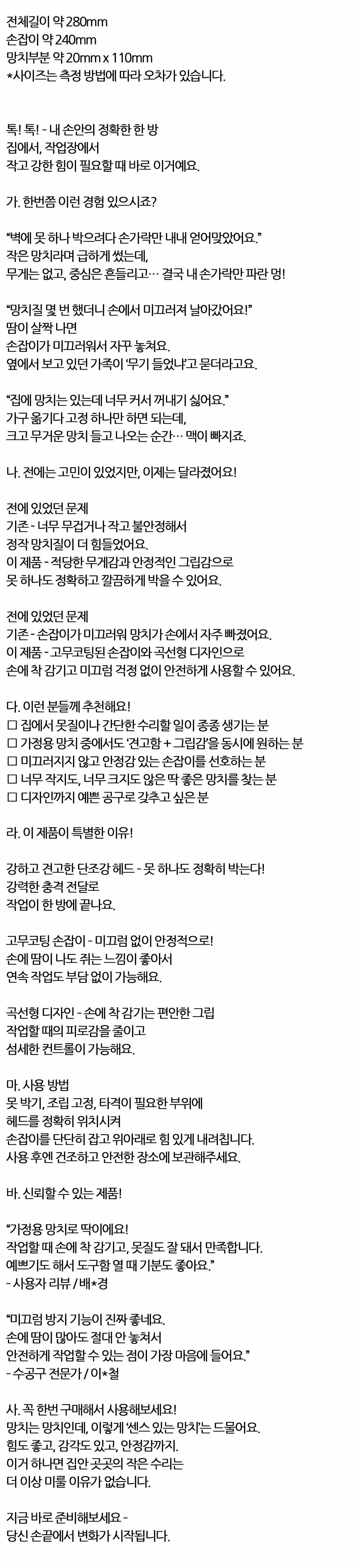 작고 강한 힘이 필요할 때 바로 이거예요 망치 280mm