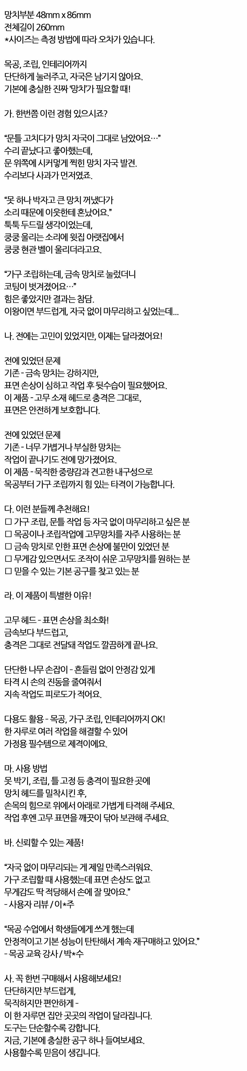 단단하게 눌러주고 자국 남기지 않아요 목공 고무망치