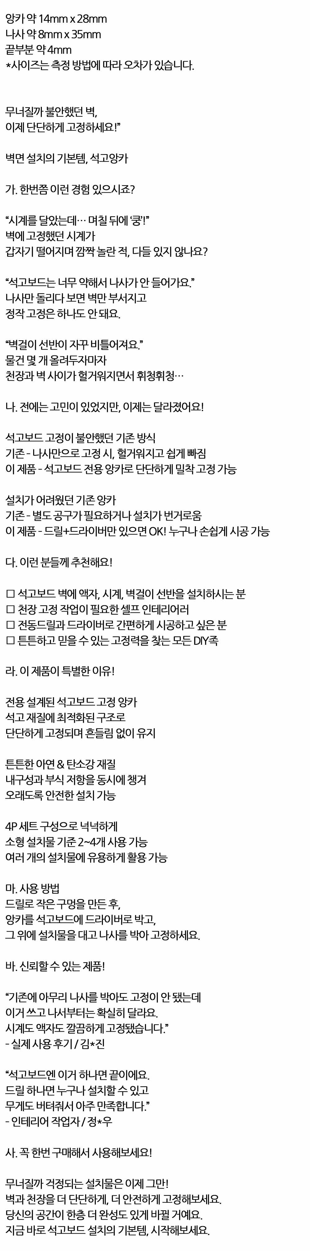 이제 단단하게 고정하세요 천장 석고보드 고정앙카 4P
