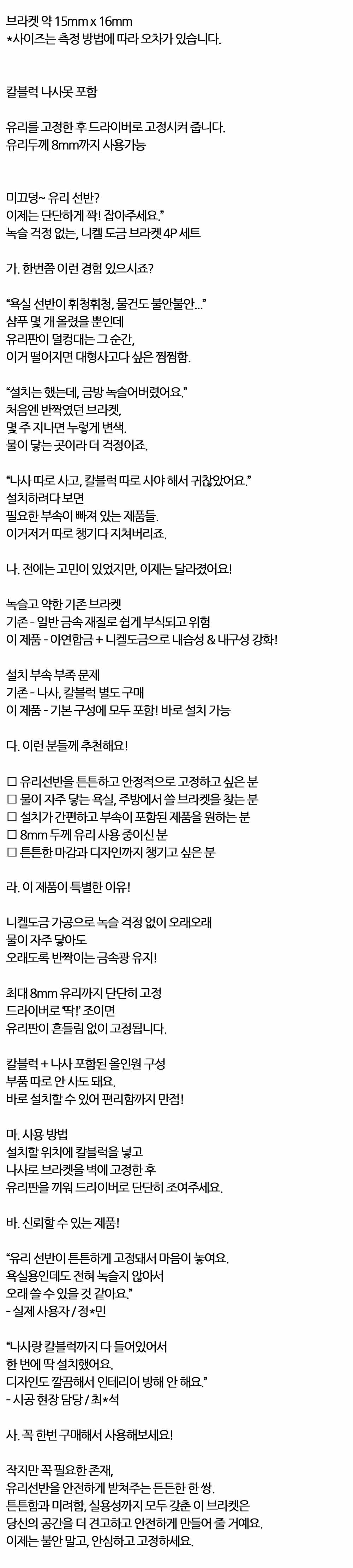 욕실 주방 유리선반 튼튼하고 안정적 고정 브라켓 4P
