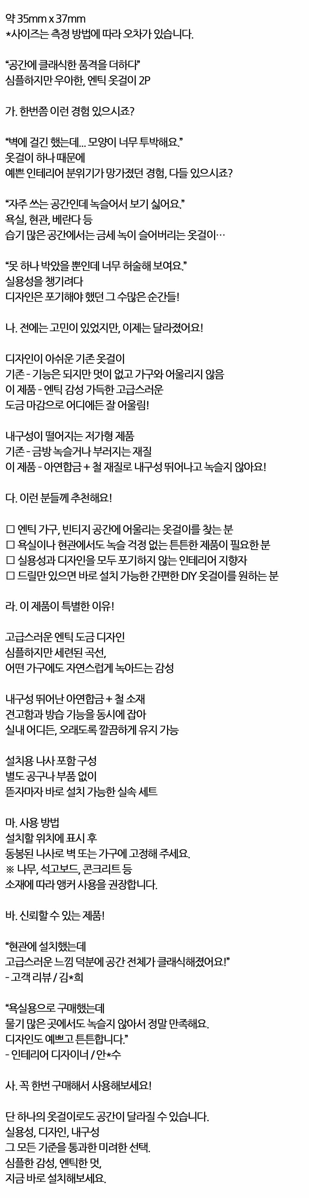 바로 설치가능 고급스러운 엔틱도금 디자인 옷걸이 2P