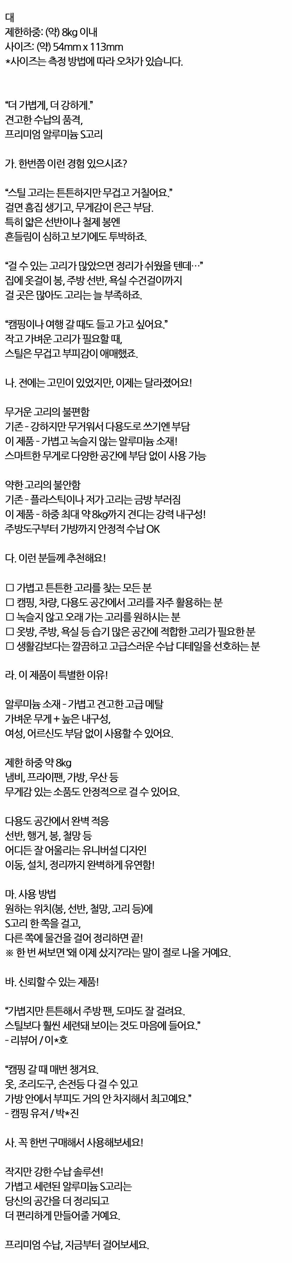무게감 있는 소품도 안정적으로 알루미늄 S고리 대 2P