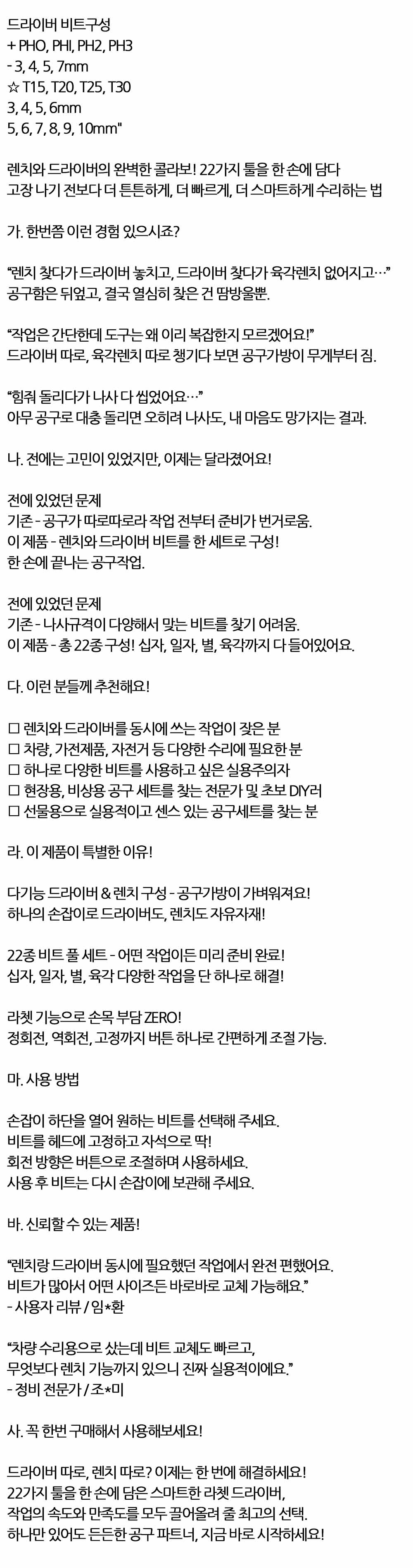 22가지 툴을 한 손에 담다 렌치와 드라이버의 콜라보