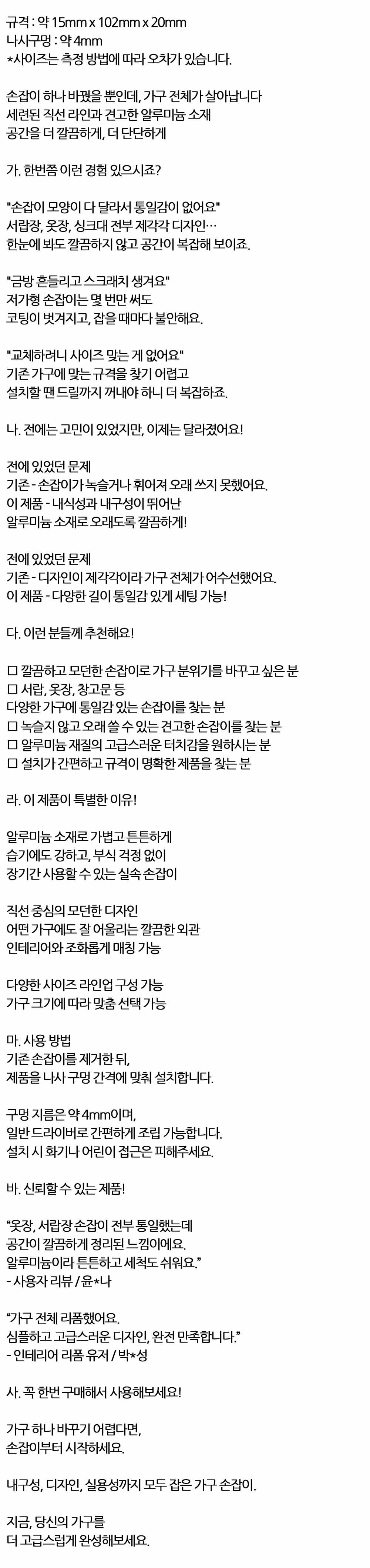 세련된 직선 라인과 견고한 알루미늄 가구리폼 손잡이