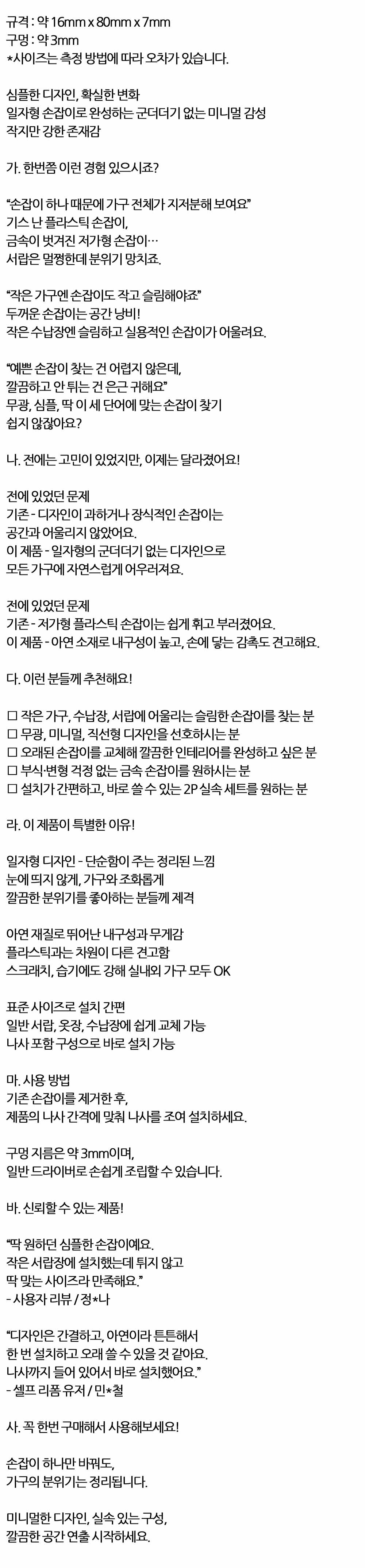 군더더기없는 미니멀감성 가구리폼 서랍손잡이 화이트
