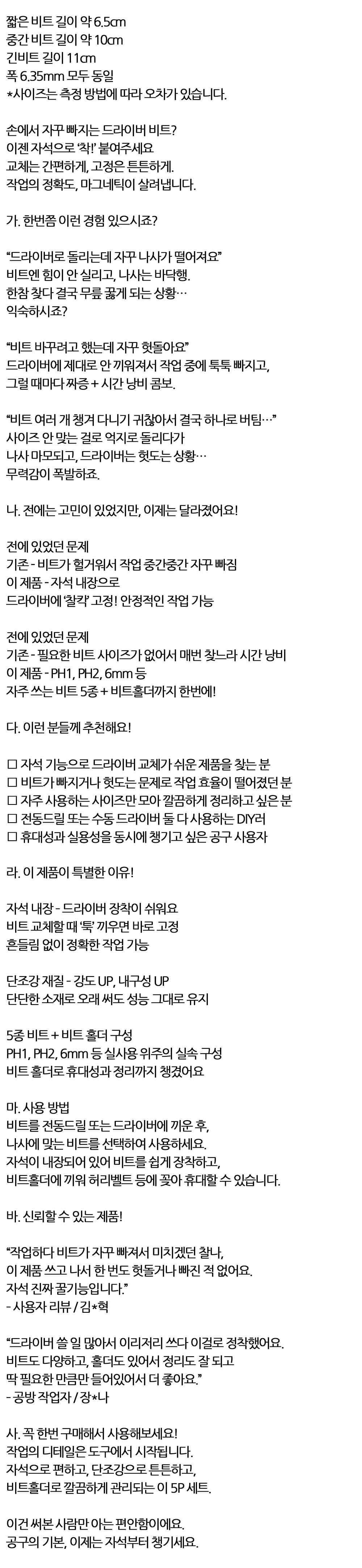 자석 내장 드라이버 장착이 쉬워요 마그네틱 비트세트