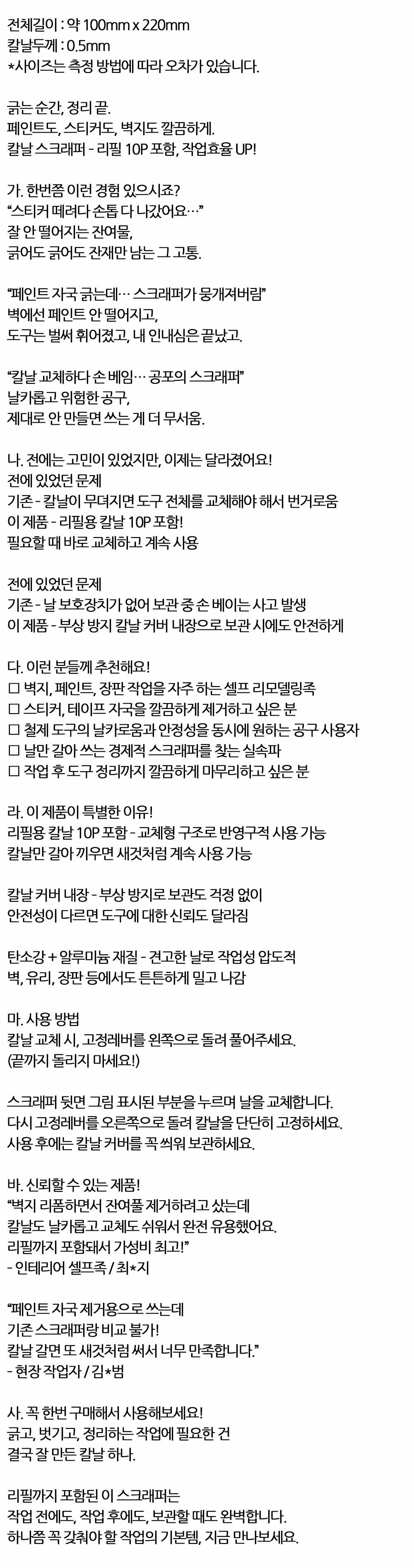 칼날만 갈아 끼우면 새것처럼 계속 사용가능 스크래퍼