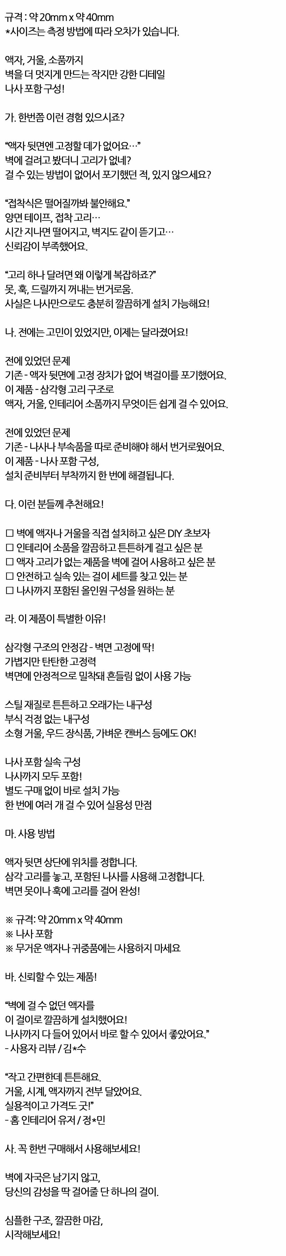 접착식은 떨어질까봐 불안해요 액자 벽걸이 6입 블랙