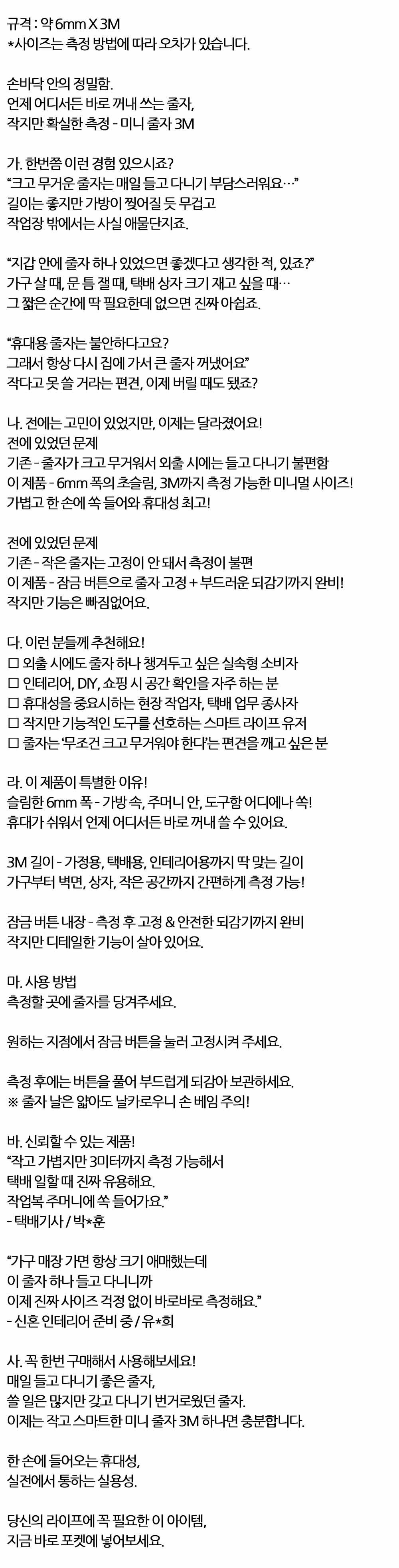 들고 다니기 좋은 한 손에 들어오는 휴대 미니줄자 3M
