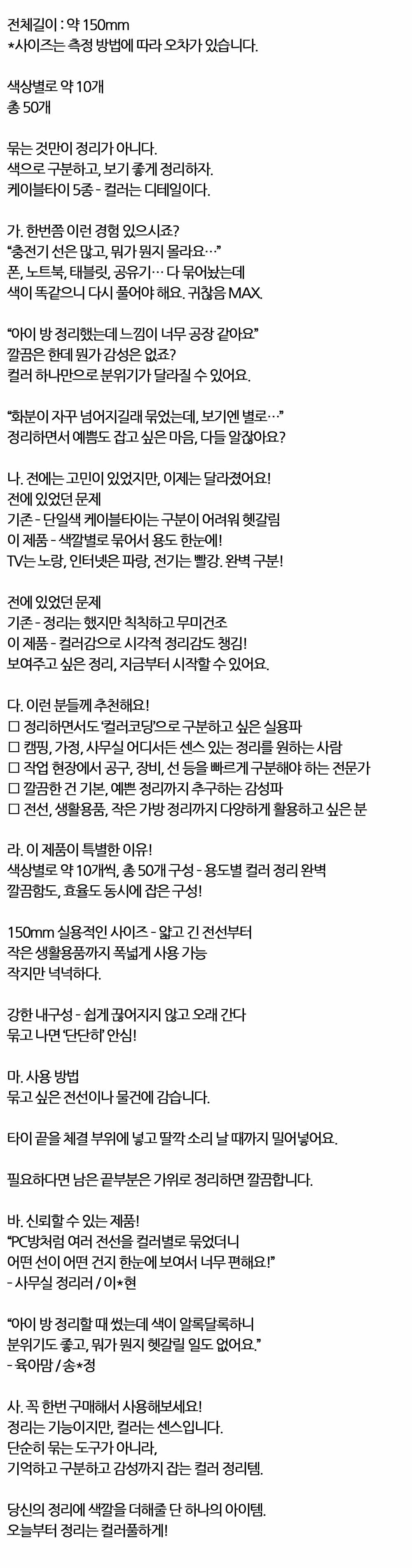 색으로 구분하고 보기좋게 정리 컬러 케이블타이 50입