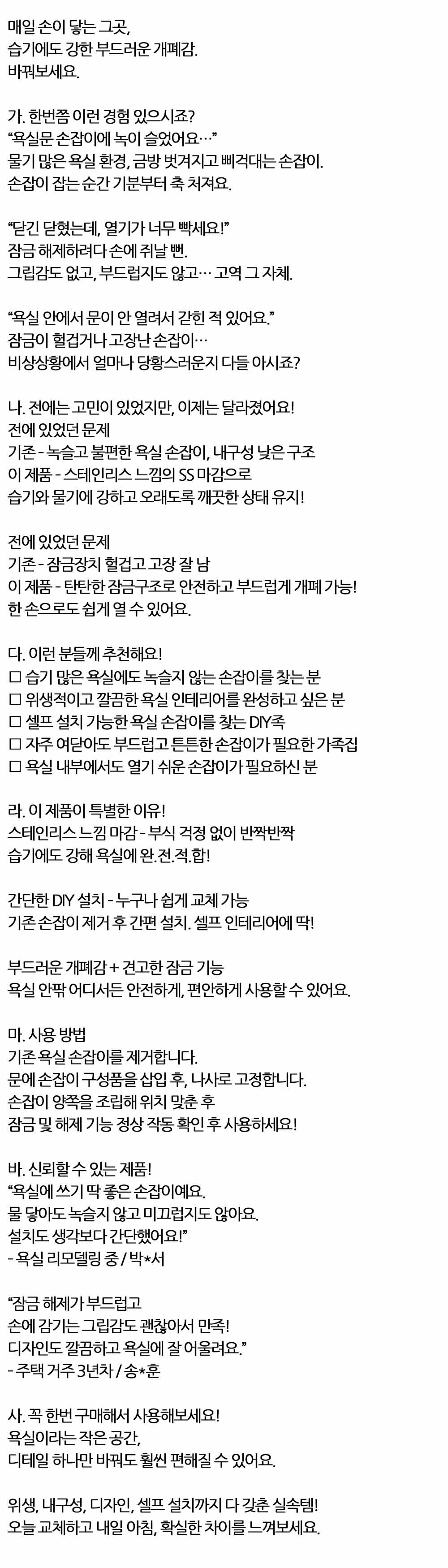 습기와 물기에도 강한 부드러운 개폐감 욕실용 손잡이