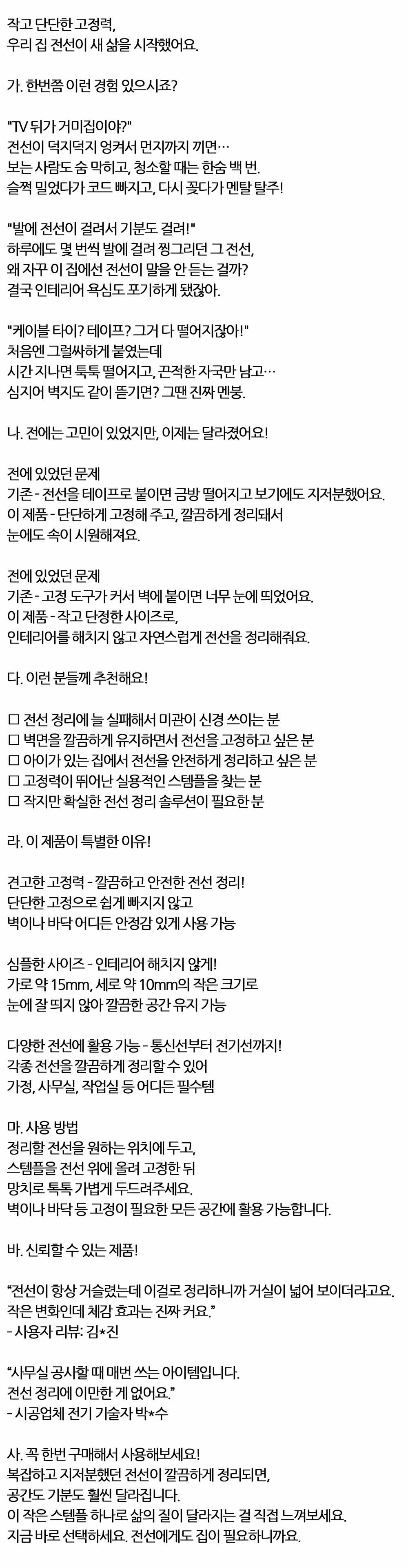 단단하게 고정 깔끔하게 전선 통신선 정리 유선스템플