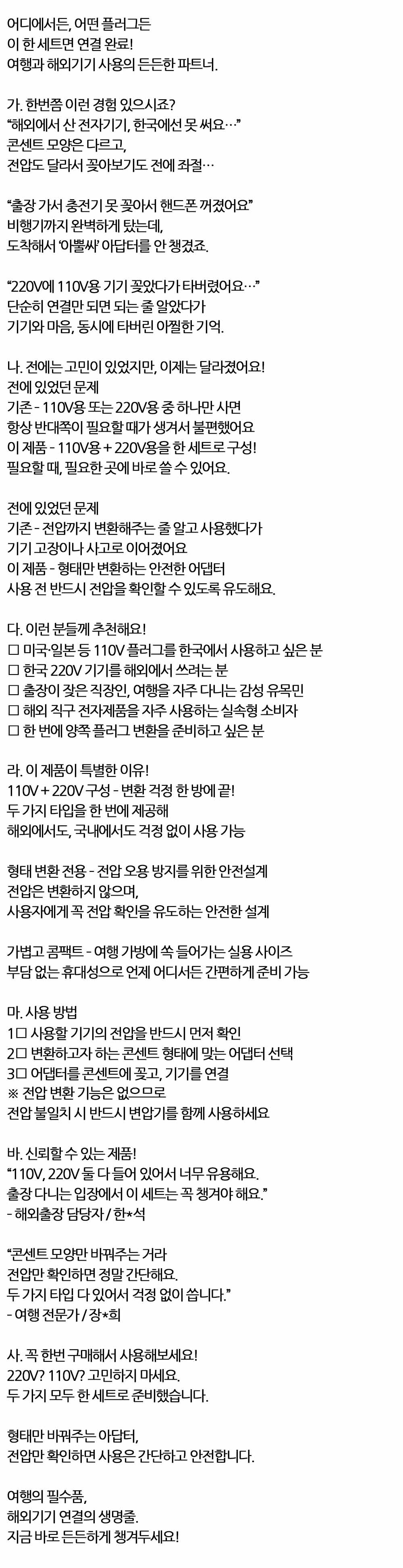 110V용 220V용 한 세트로 구성 전자제품 변환 아답터