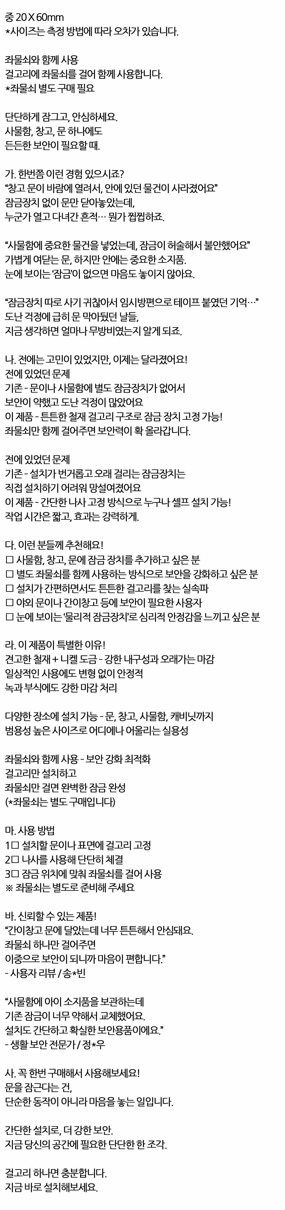 튼튼한 철재 걸고리구조 방범 도난방지 문잠금고리 중