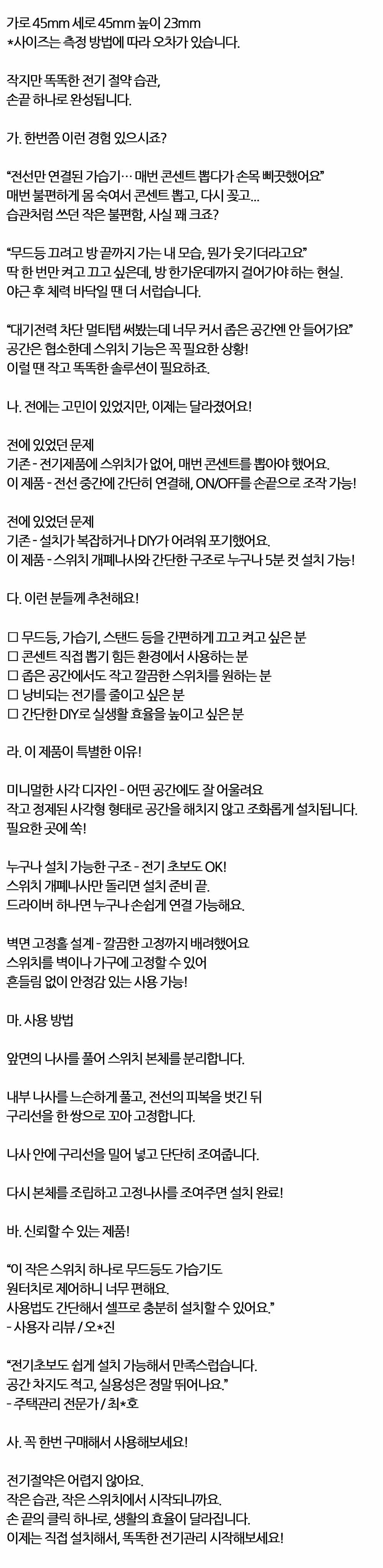 ON OFF 손끝 조작 똑똑한 전기 절약 습관 사각스위치