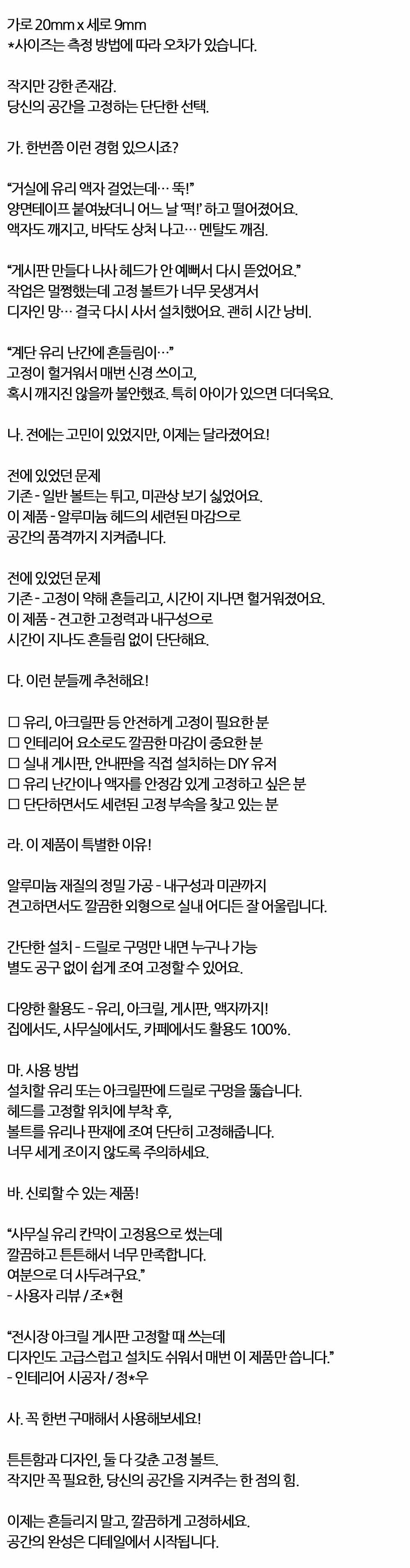 유리 전시장 아크릴 게시판 고정할 때 알루미늄 볼트