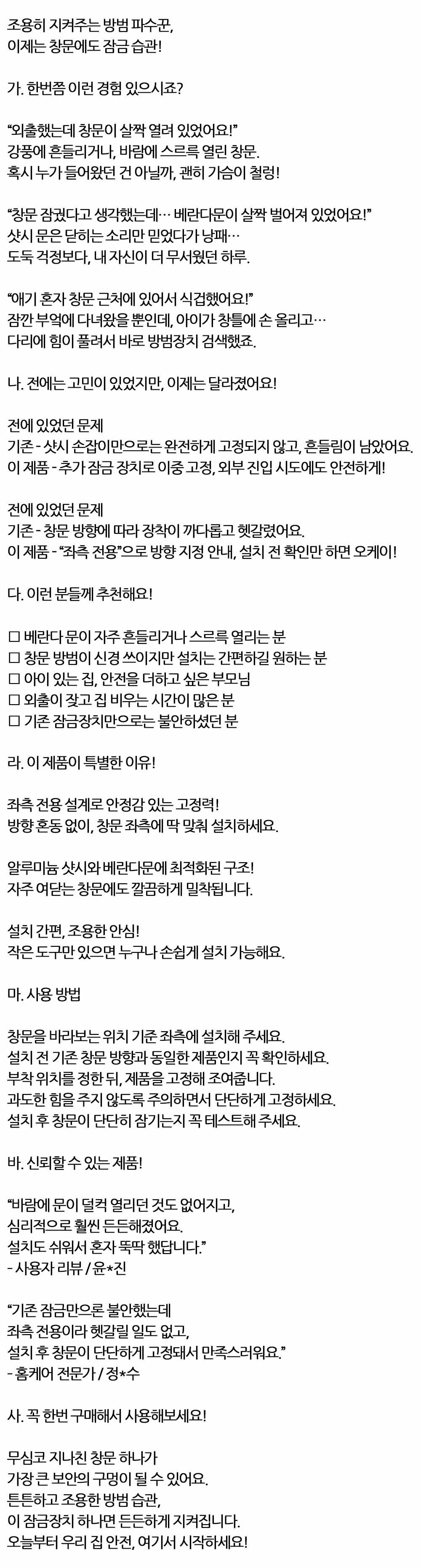 외출했는데 창문이 열려 있었어요 좌측 창문잠금걸이