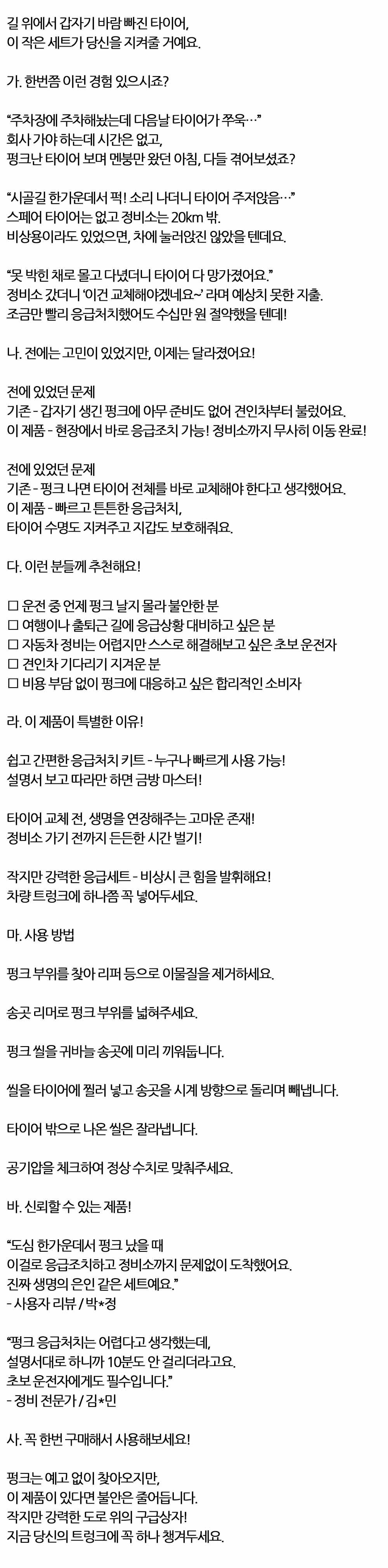 길 위에서 갑자기 바람 빠진 타이어펑크 응급수리세트