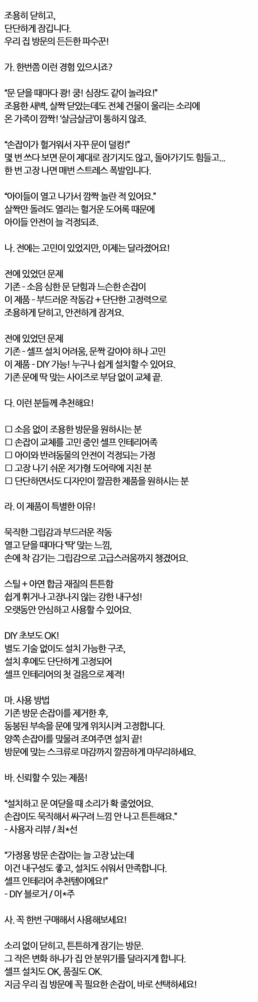 조용히 닫히고 단단하게 잠깁니다 실내용 방문손잡이