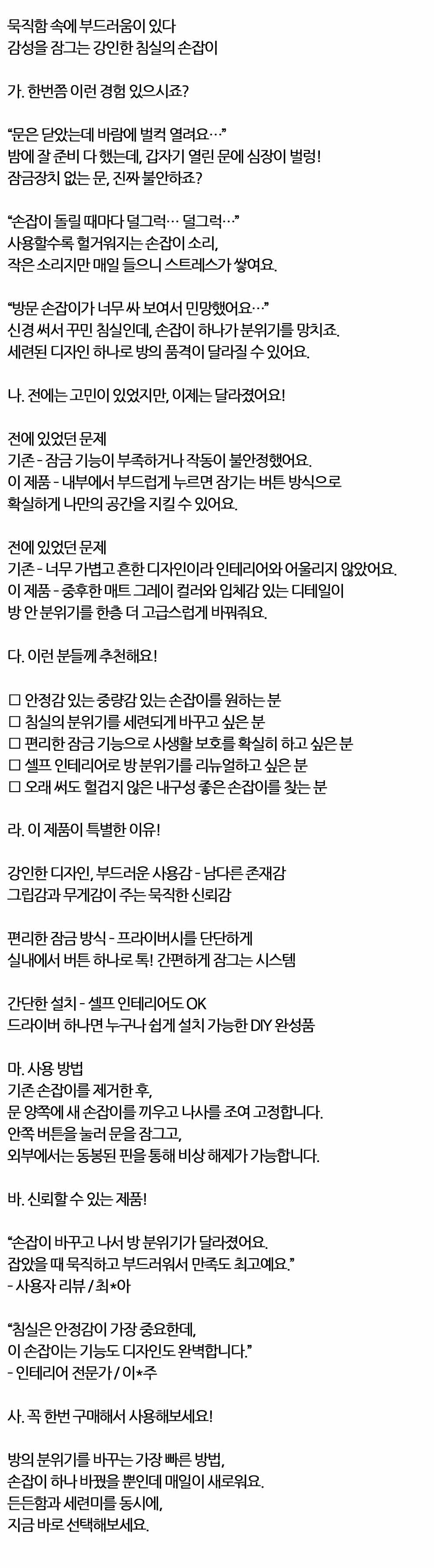 밤에 잘 준비 다 했는데 갑자기 열린문 침실 문손잡이