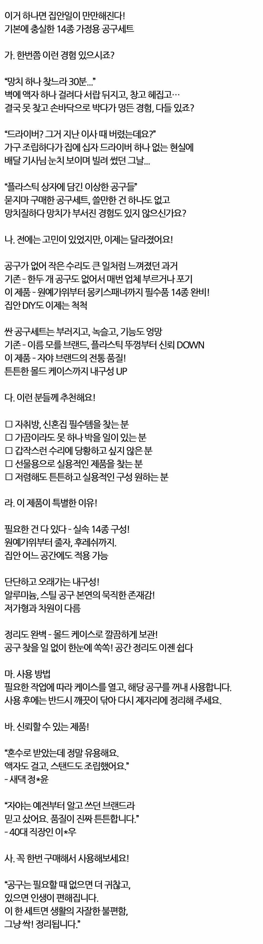 이거 하나면 집안일이 만만해진다 가정 공구세트 14종