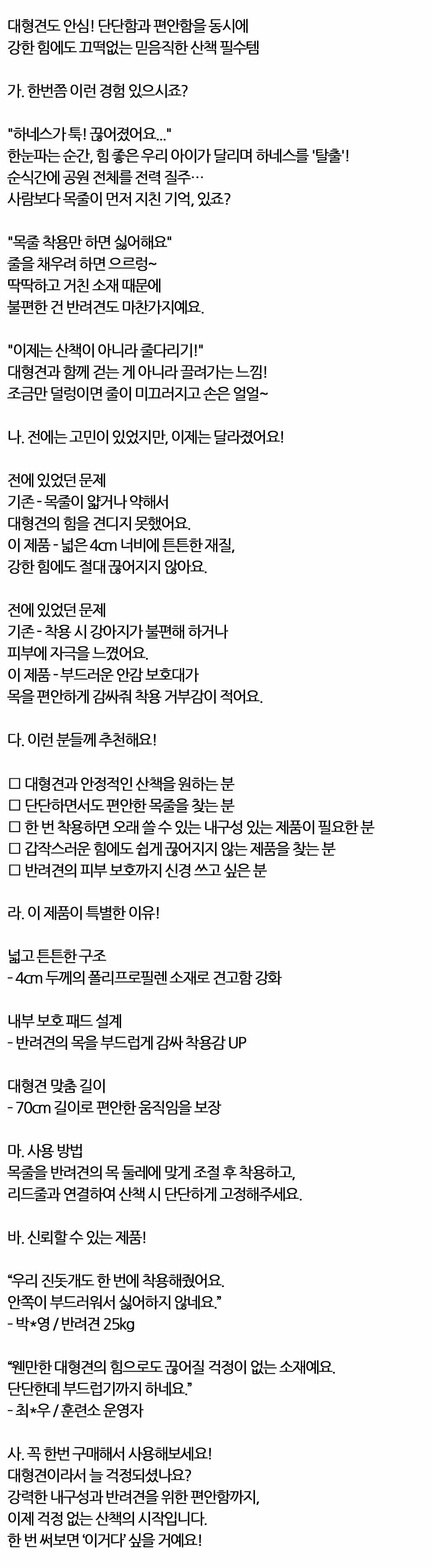 강한힘에도 끄떡없는 믿음직한 대형견전용 산책 목줄