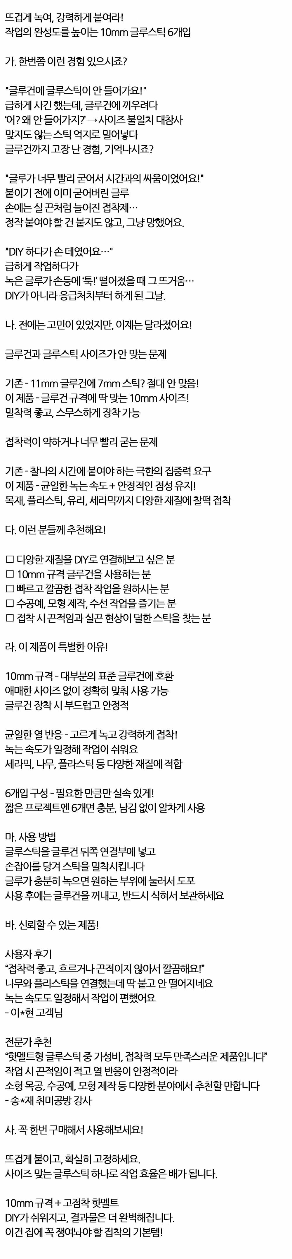 뜨겁게 녹여 강하게 붙여라 핫멜트 글루스틱 10mm 6입