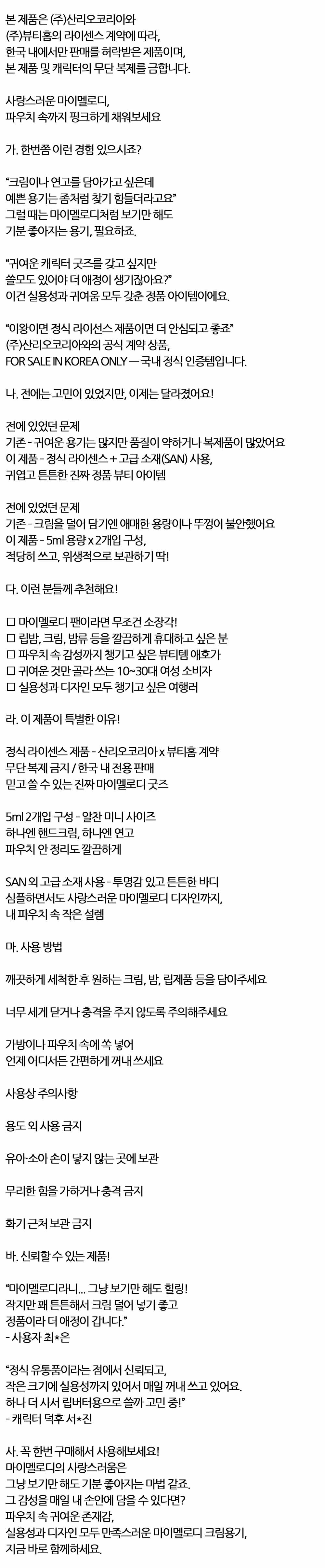 크림이나 연고를 담을때 마이멜로디 크림용기 5ml 2입