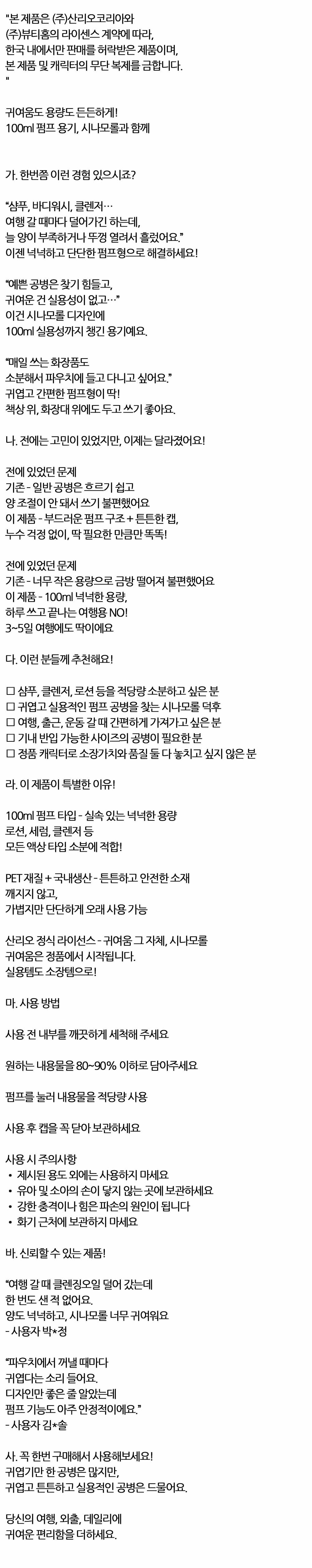 양도 넉넉하고 너무귀여워요 시나모롤 펌프용기 100ml