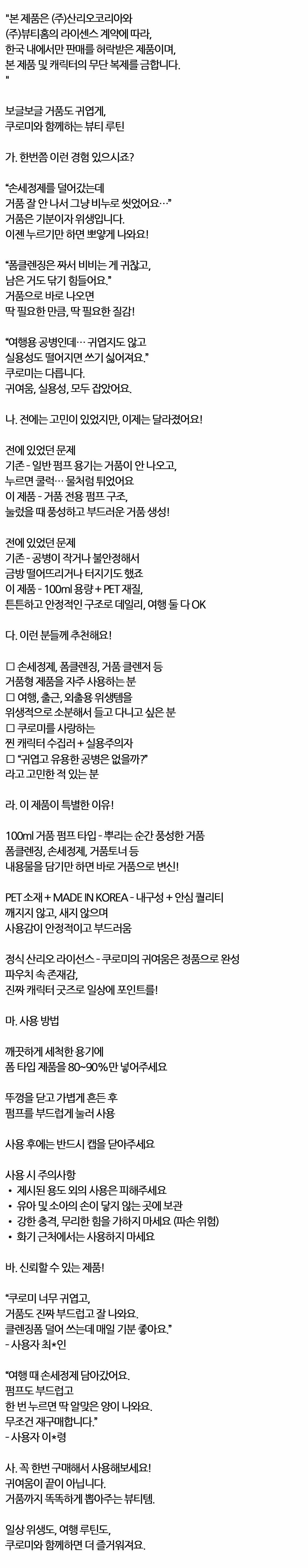 보글보글 거품도 귀엽게 쿠로미 휴대 거품용기 100ml