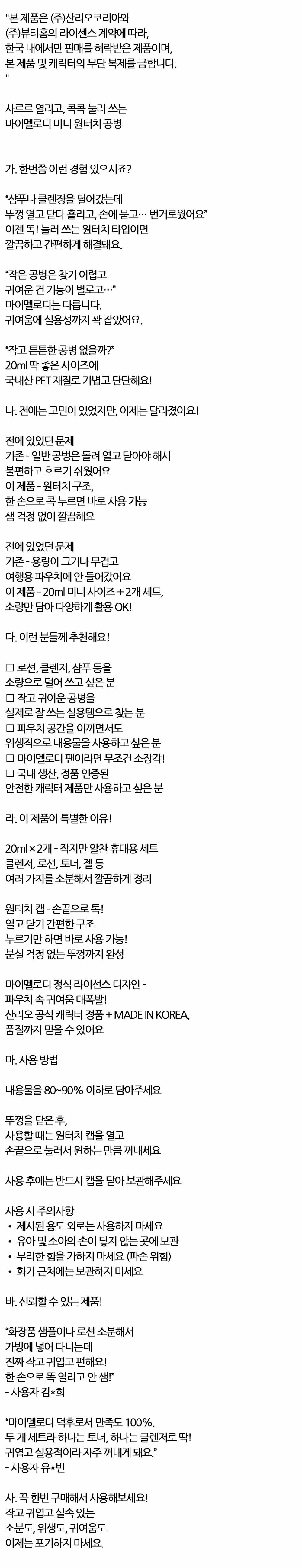 콕 누르면 톡 나오는 마이멜로디 원터치용기 20ml 2입