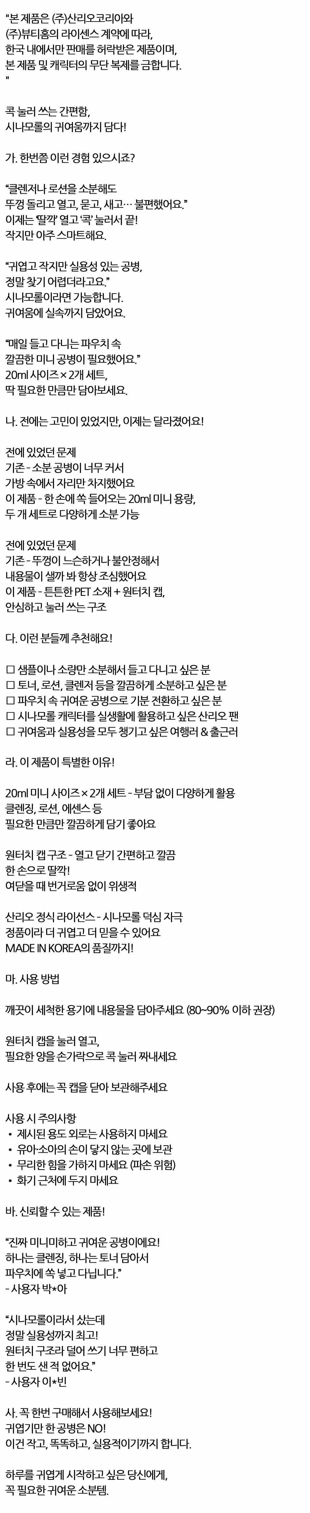 한 손으로 똑 바로사용 시나모롤 원터치용기 20ml 2입