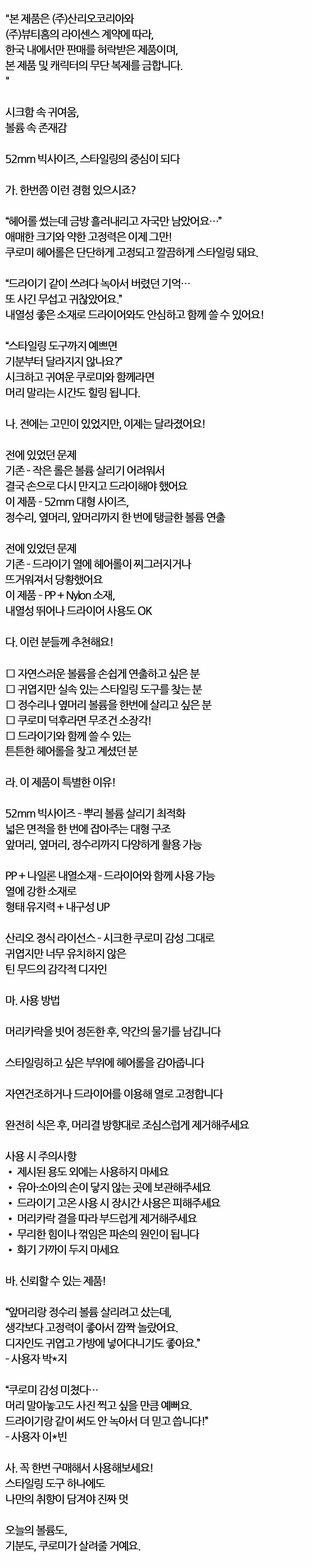 시크함 속 귀여움 헤어볼륨 살리기 쿠로미 헤어롤 1입