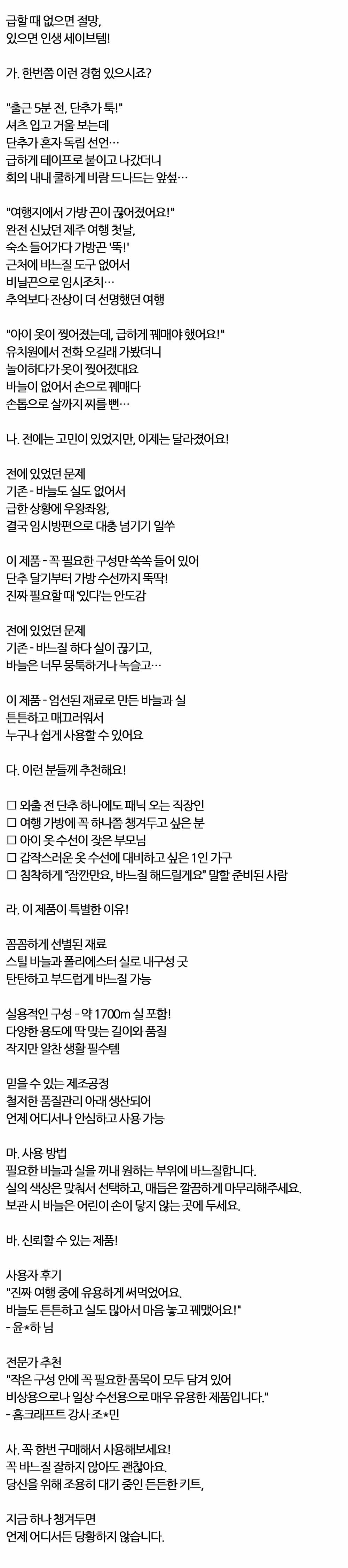 아이 옷이 찢어졌는데 급하게 꿰매야 바늘과 실세트