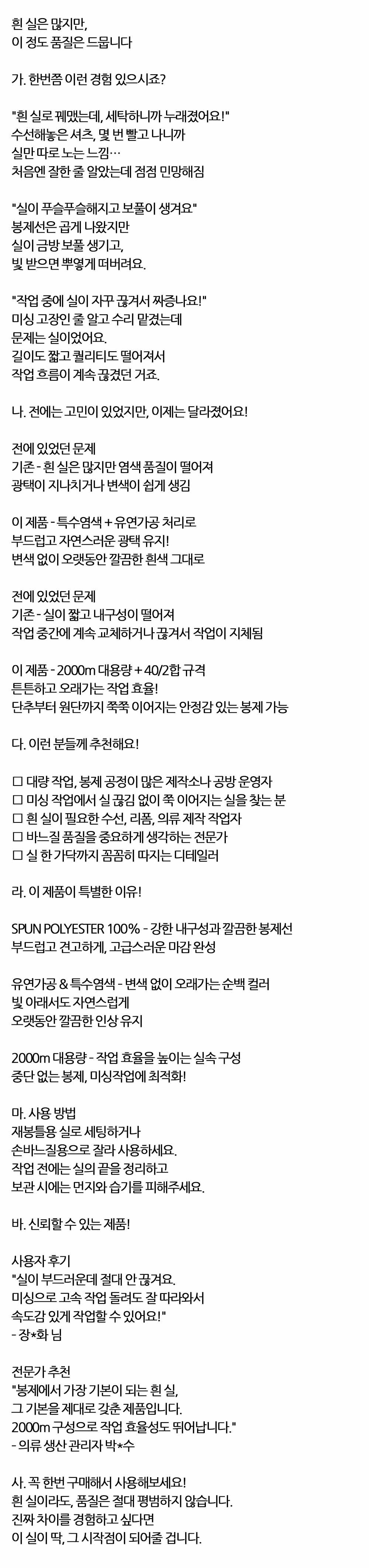 흰 실은 많지만 이정도 품질은 드뭅니다 백색실 2000m