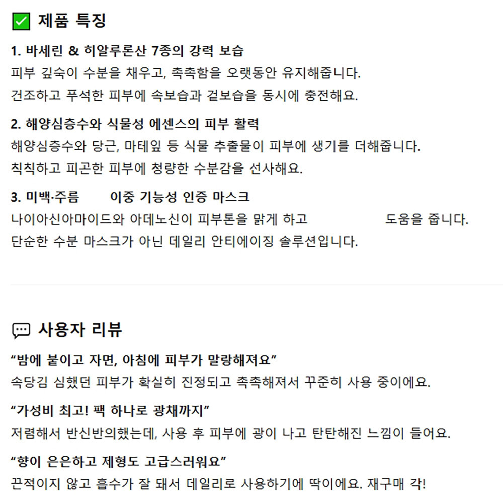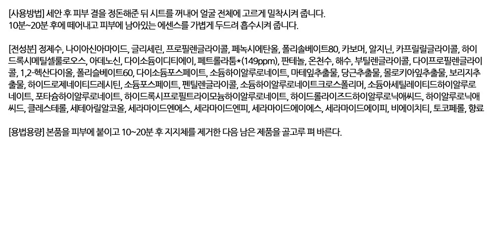 아침에 피부가 말랑해져요 히알루론산 마스크팩 10입