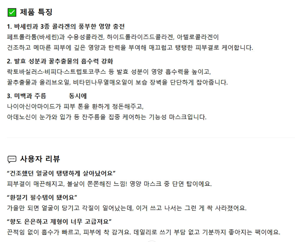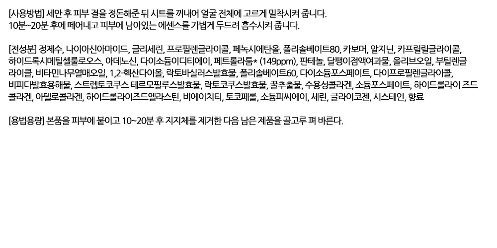 건조했던 얼굴이 탱탱하게 살아났어요 마스크팩 10입