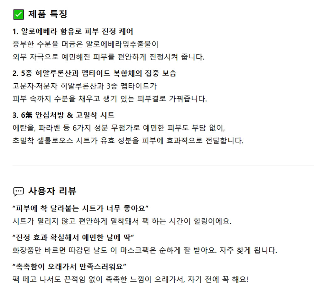 수분 머금은 알로에베라 피부 진정케어 마스크팩 10입