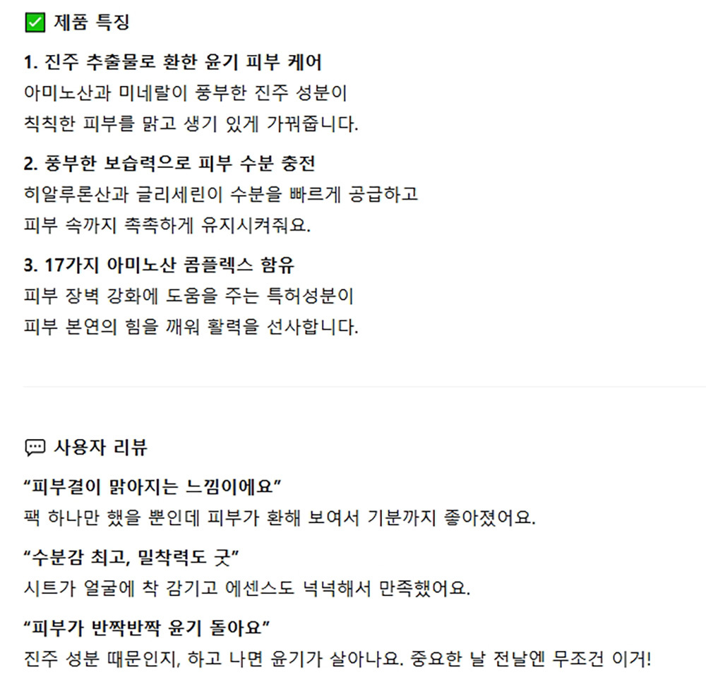 피부결이 맑아지는 느낌이에요 진주 마스크팩 10입