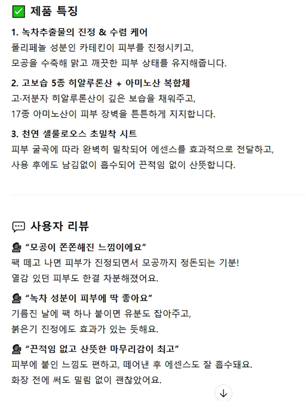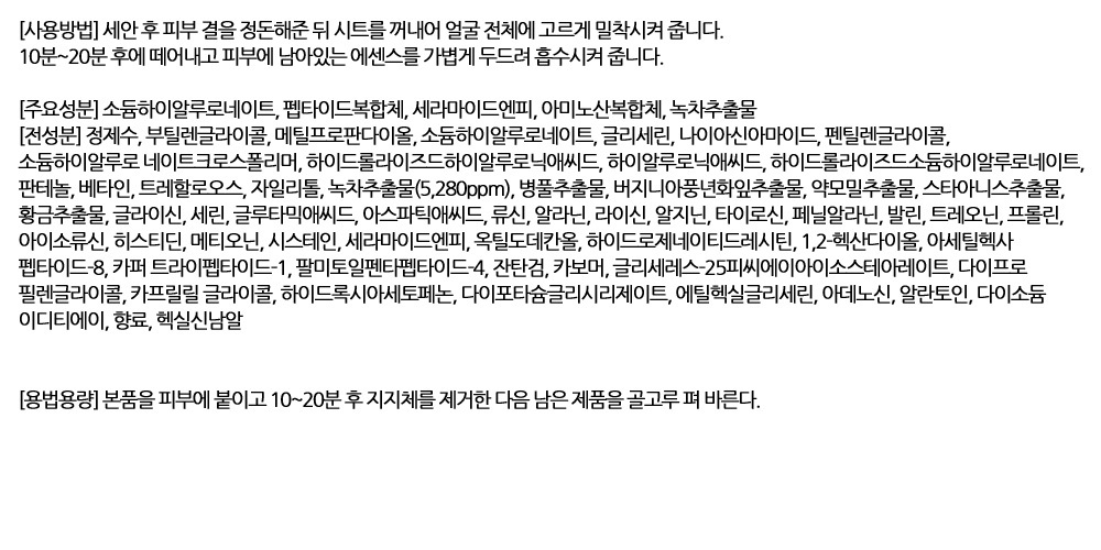 모공 쫀쫀해진 느낌이에요 녹차추출물 마스크팩 10입