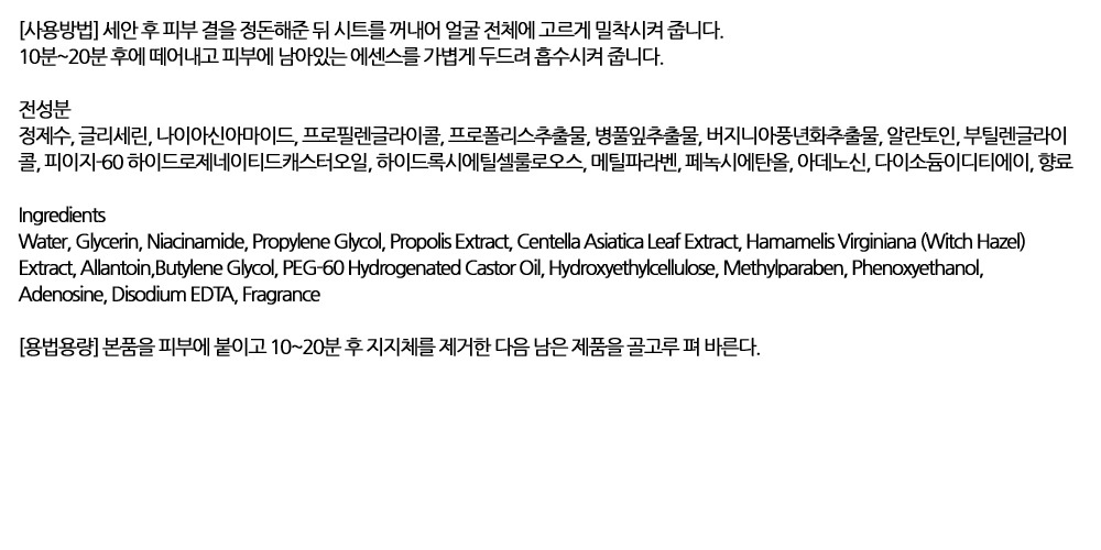 다음날 피부결 매끈해져요 프로폴리스 마스크팩 10입