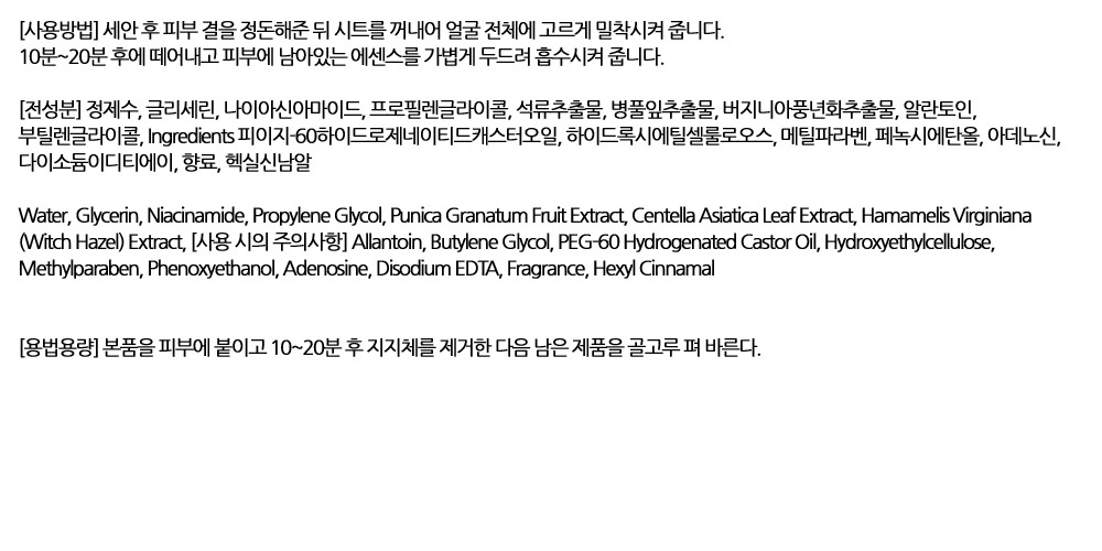 칙칙했던 피부 맑아졌어요 석류추출물 마스크팩 10입