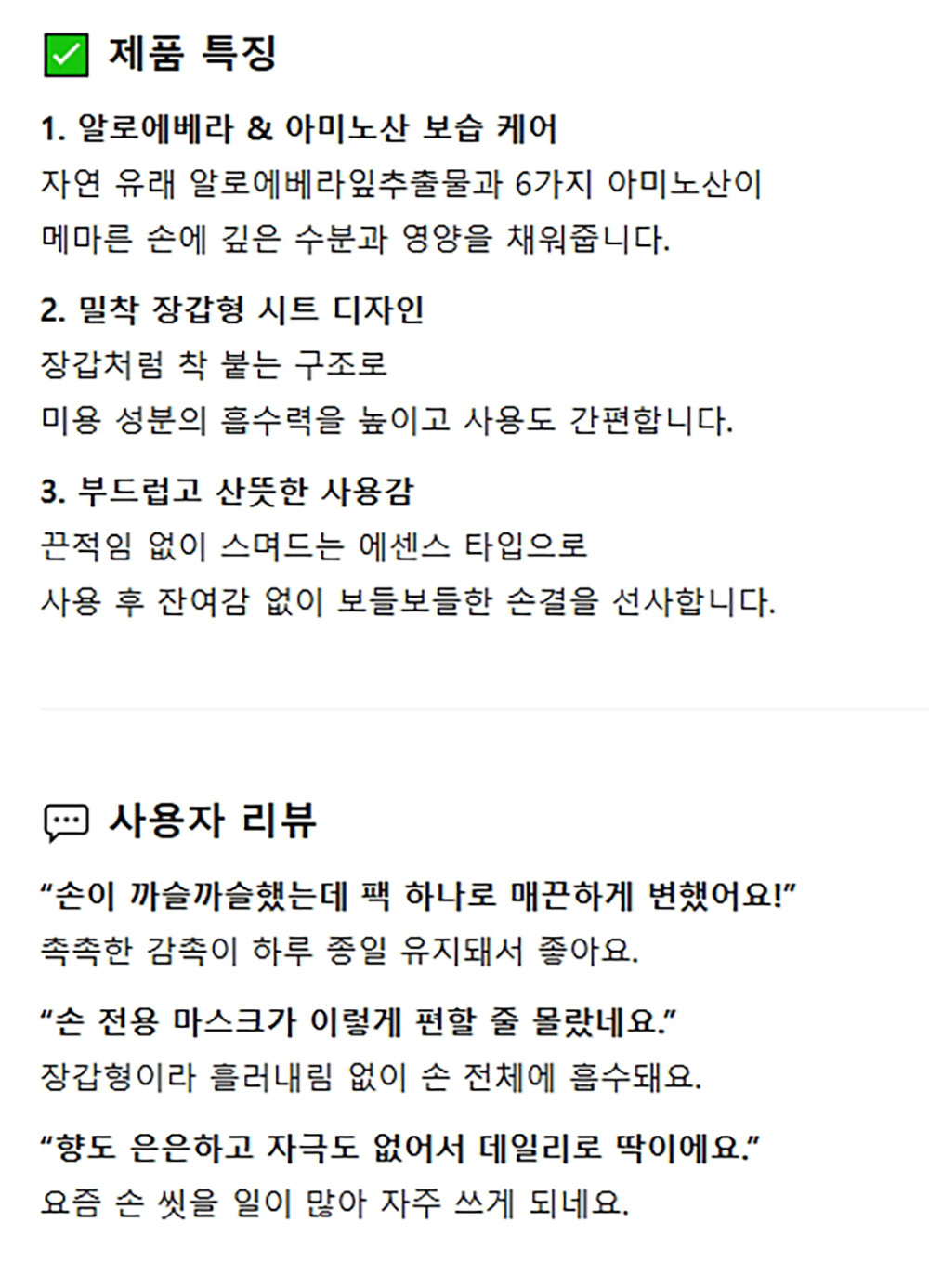 장갑형이라 흘러내림 없이 손전체 흡수돼요 손팩 10매