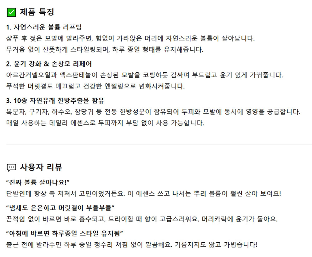 힘없이 가라앉는 머리 자연스러운 볼륨 에센스 600ml