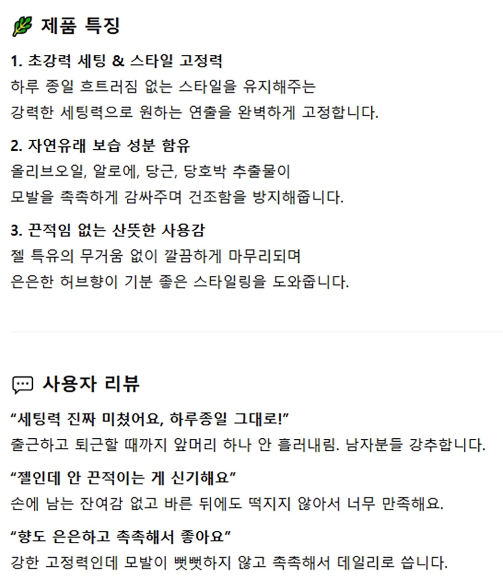초강력 세팅 스타일고정 올리브오일 하드 헤어젤 500g