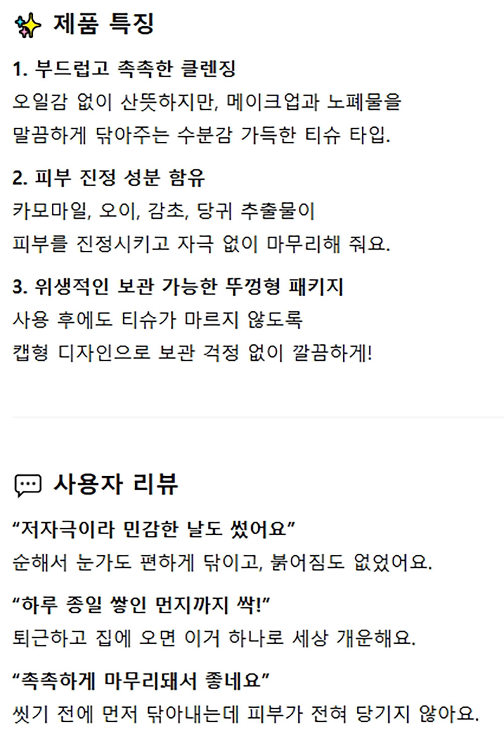 말끔하게 닦아주는 수분감 가득한 클렌징 티슈 80매