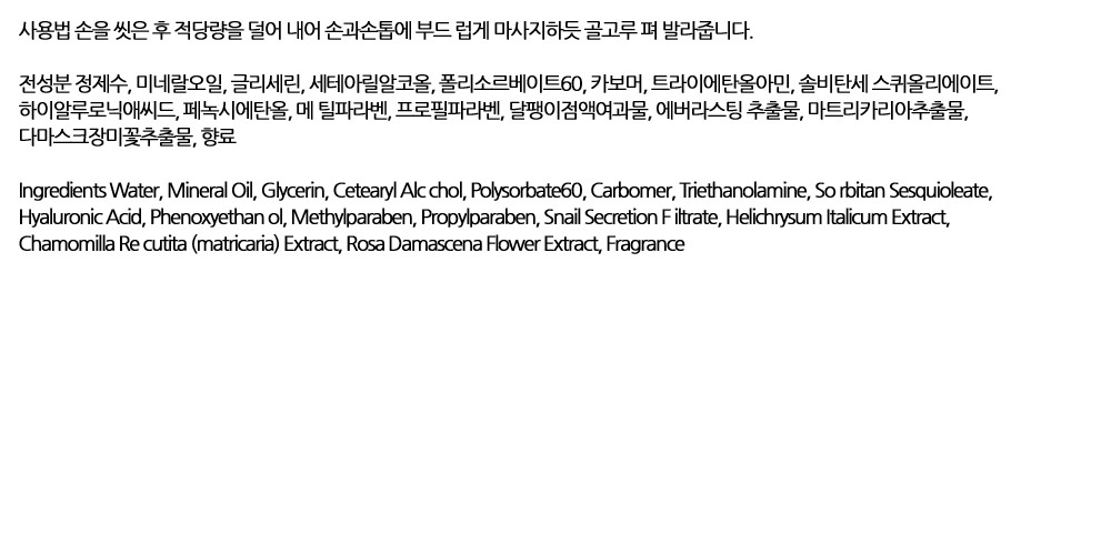 달팽이점액 손피부 영양공급 매끄럽게 핸드크림 80ml