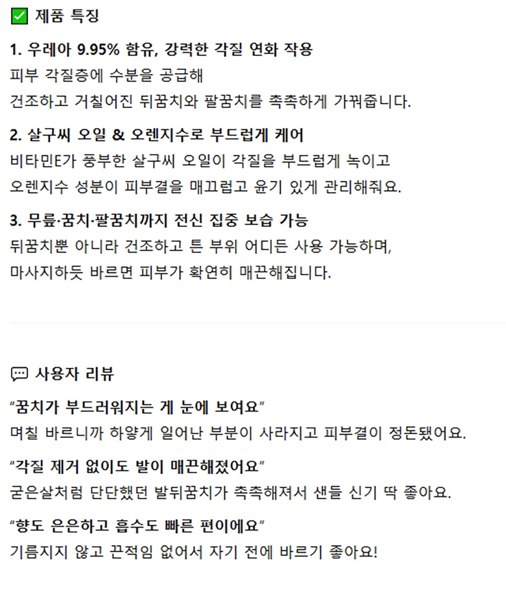 건조하고 거칠어진 뒤꿈치 팔꿈치 촉촉 크림 100ml